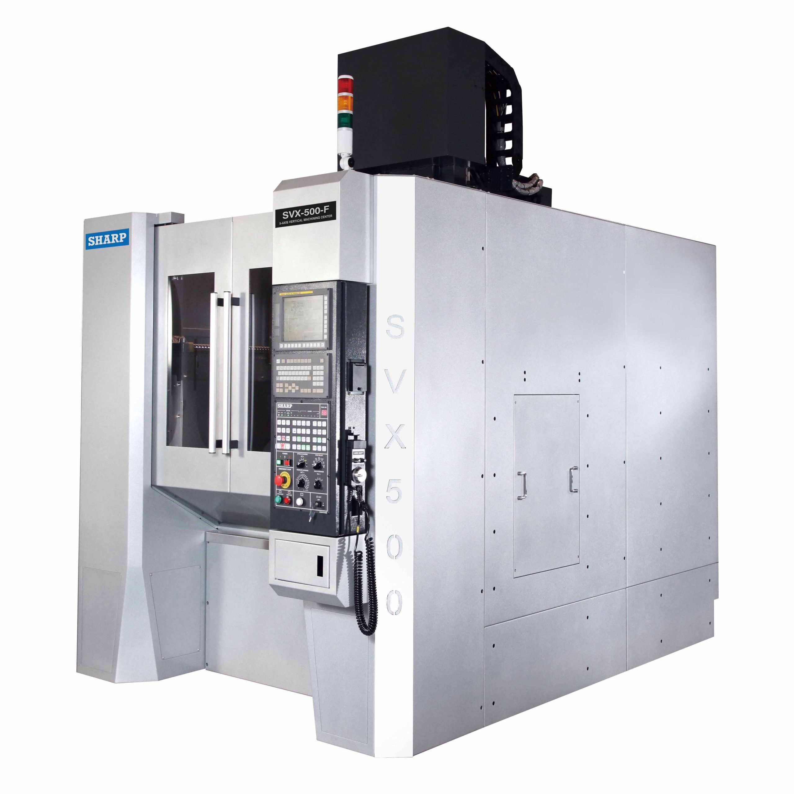 El Centro de maquinado vertical de 5 ejes SVX-500 está diseñado para tener una calidad sin igual y superar a todas las otras máquinas en su categoría. Sharp SVX-500 permite el mecanizado simultáneo de 5 caras y 5 ejes. A diferencia de los 3 ejes que requieren una configuración separada para cortar diferentes lados de una pieza, la máquina de 5 ejes requiere que la pieza se establezca solo una vez y se gire en una serie de posiciones para mecanizar cada lado sin la necesidad de restablecer la pieza. Todas las piezas fundidas principales del SVX-500 se analizan utilizando el Método de elementos finitos (FEM) para localizar áreas de tensión y deformación, múltiples condiciones de carga por desplazamiento térmico, por gravedad, centrífugo y forzado. Las ubicaciones de las costillas están definidas adecuadamente para mantener la rigidez en toda la máquina. El eje 5 se construye utilizando el diseño de caja en caja para garantizar la precisión y la rigidez en diferentes condiciones de corte.