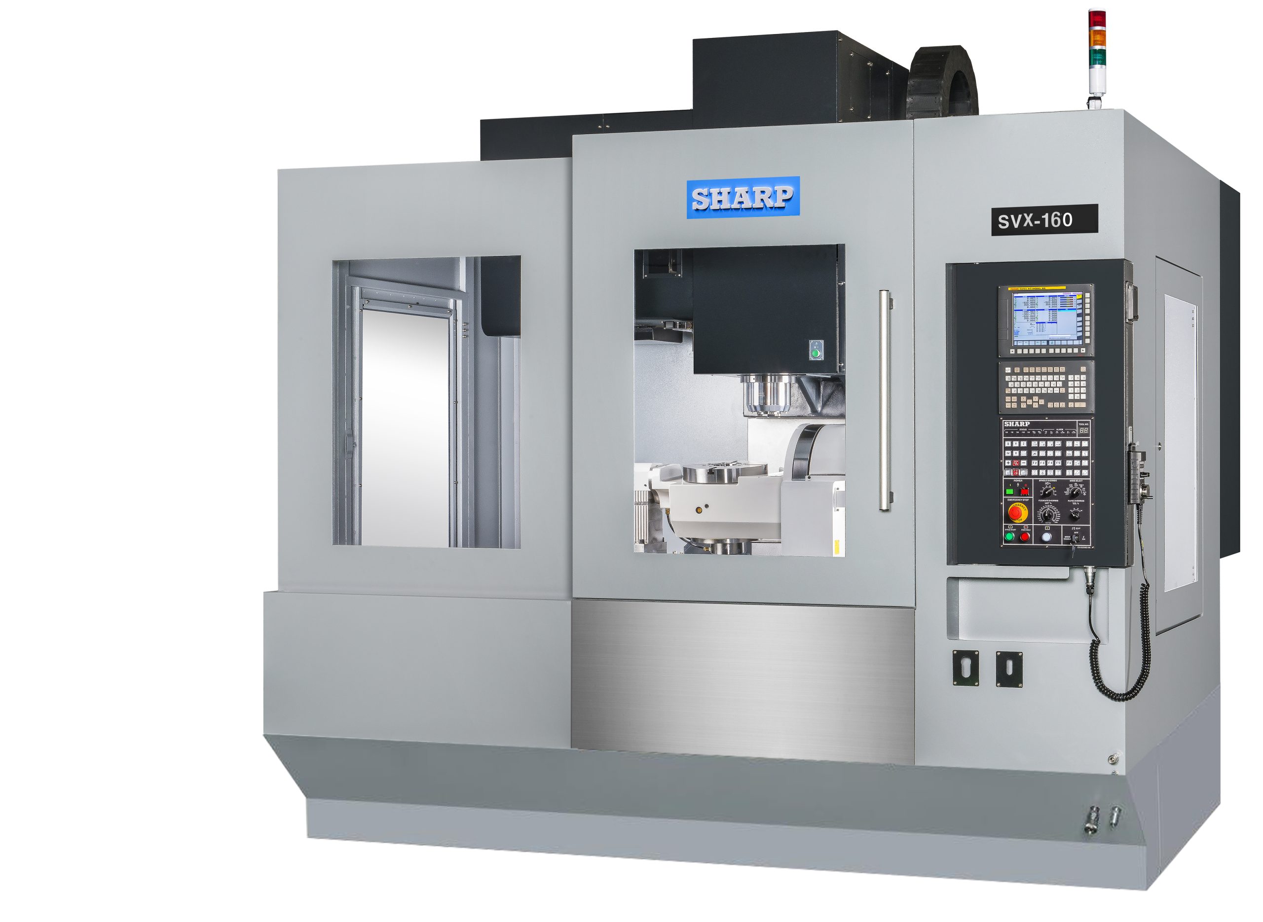está diseñado para tener una calidad sin igual y superar a todas las otras máquinas en su categoría. El SVX-160 de Sharp permite un mecanizado simultáneo de 5 caras y 5 ejes. A diferencia de los 3 ejes que requieren una configuración separada para cortar diferentes lados de una pieza, la máquina de 5 ejes requiere que la pieza se establezca solo una vez y se gire en una serie de posiciones para mecanizar cada lado sin la necesidad de restablecer la pieza. Todas las piezas fundidas principales del SVX-160 se analizan utilizando el Método de elementos finitos (FEM) para localizar áreas de tensión y deformación, múltiples condiciones de carga por desplazamiento térmico, por gravedad, centrífugo y forzado. El diseño de costillas extensas está definido correctamente para mantener la rigidez en toda la máquina.